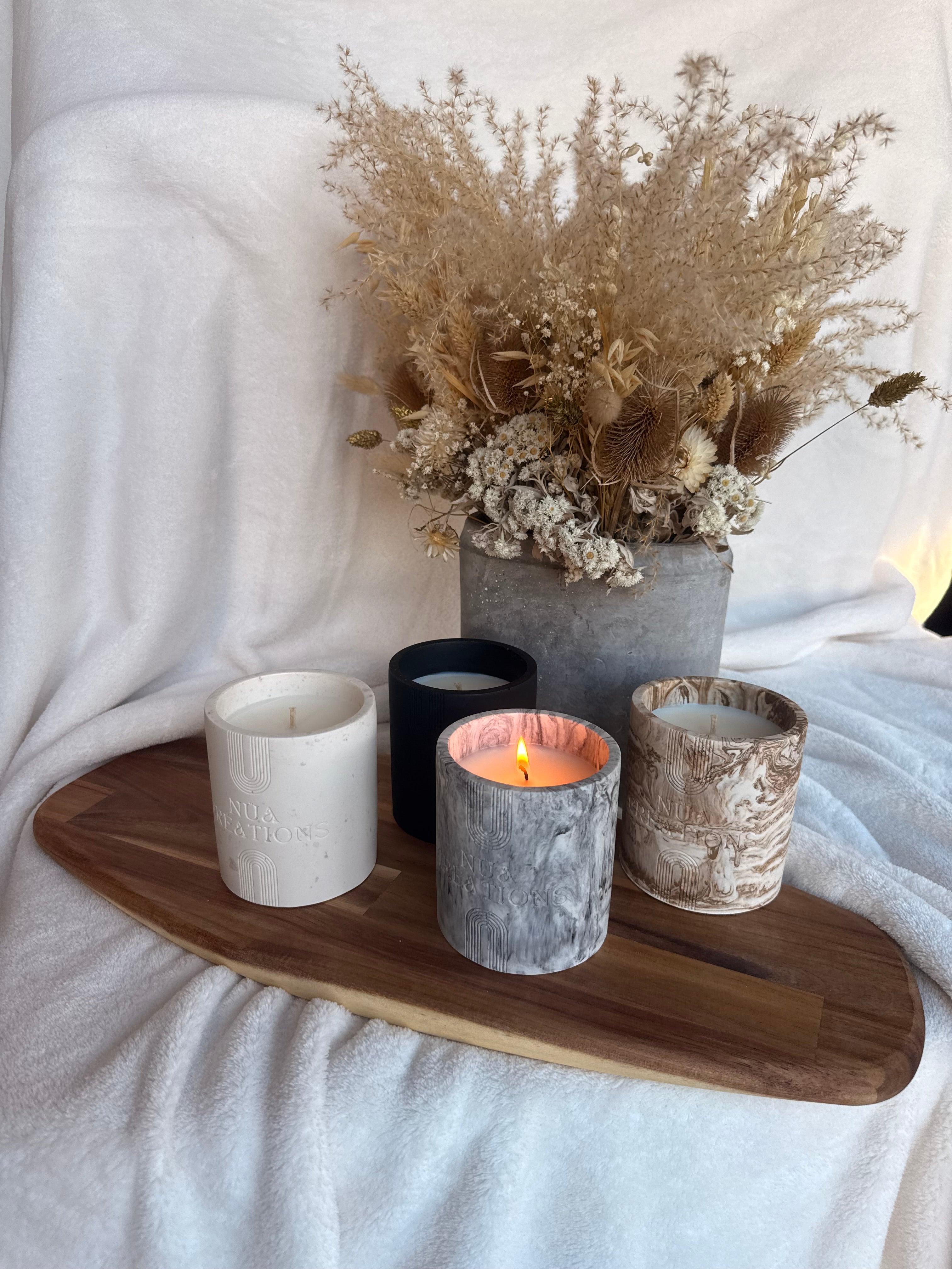 Nüa Créations propose des bougies et objets déco faits main, en jesmonite artisanale, pensés pour créer une ambiance douce et chaleureuse au quotidien.